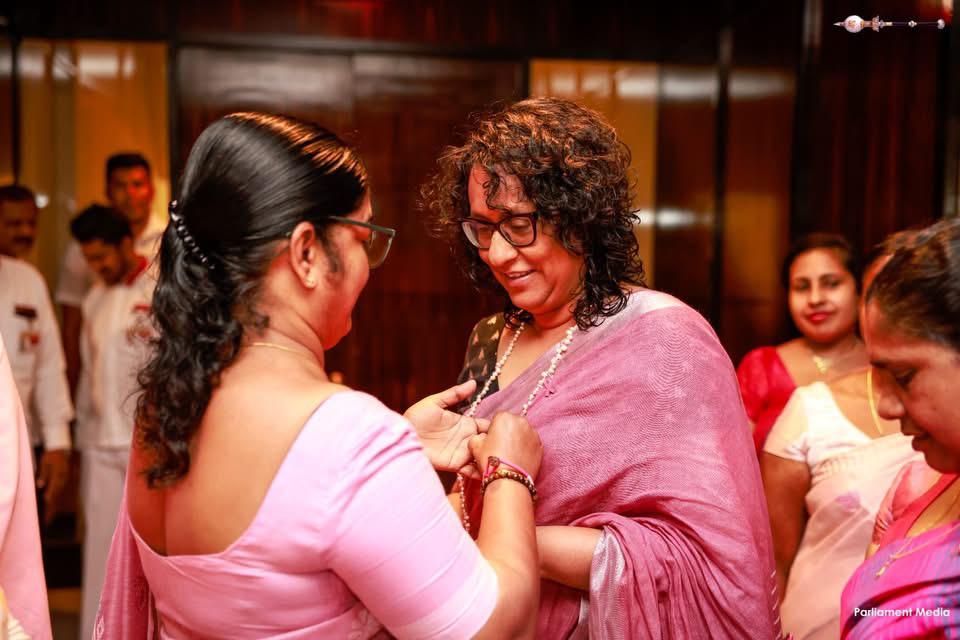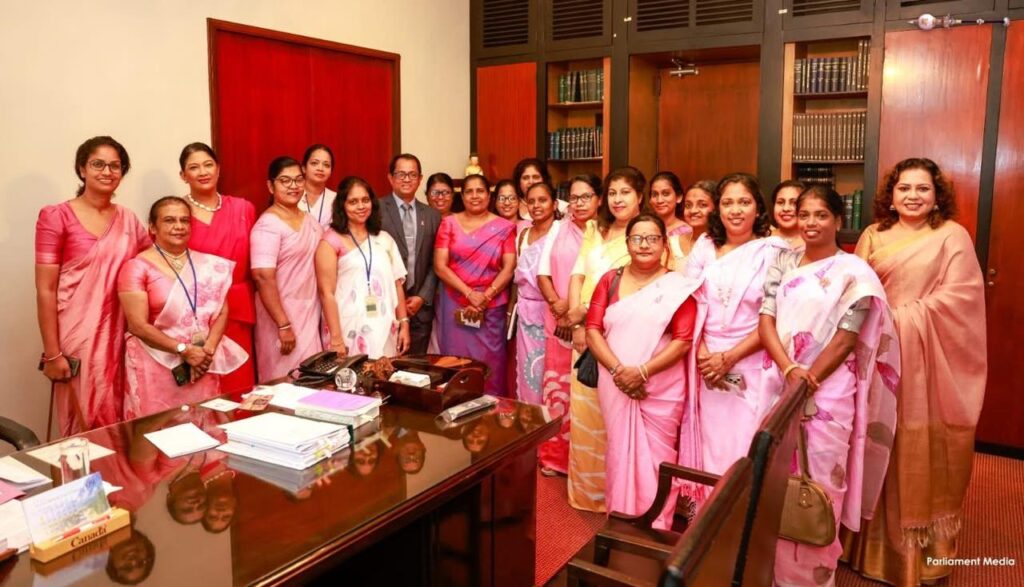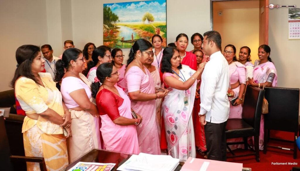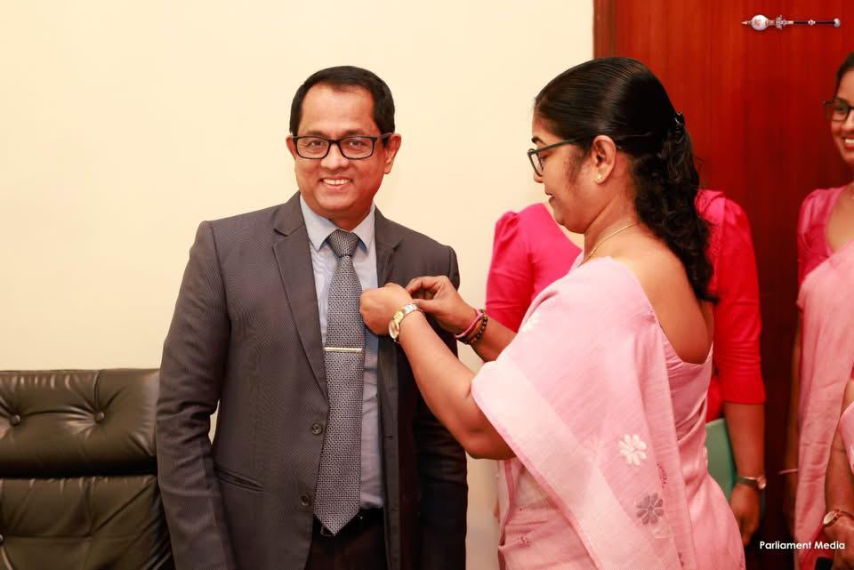 In support of this initiative, Prime Minister Dr. Harini Amarasuriya and Speaker Dr. Jagath Wickramaratne were symbolically presented with awareness badges and wristbands today (22) at the Parliament to promote awareness of breast cancer.