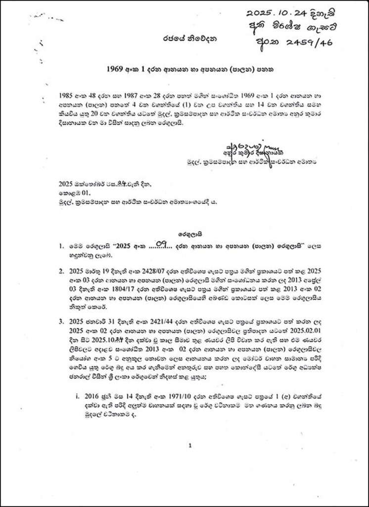 The Gazette Extraordinary has been issued with the signature of President Anura Kumara Dissanayake as the Minister of Finance, Planning and Economic Development, effective from yesterday (24).