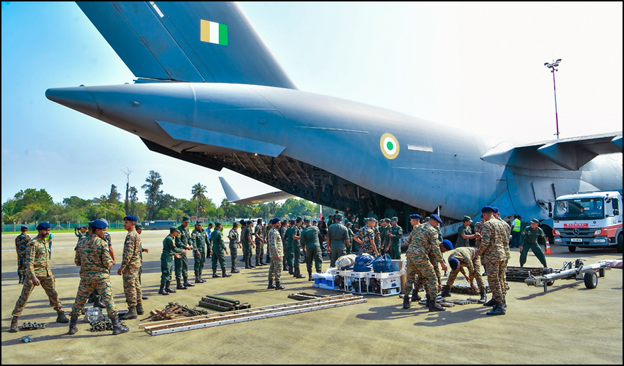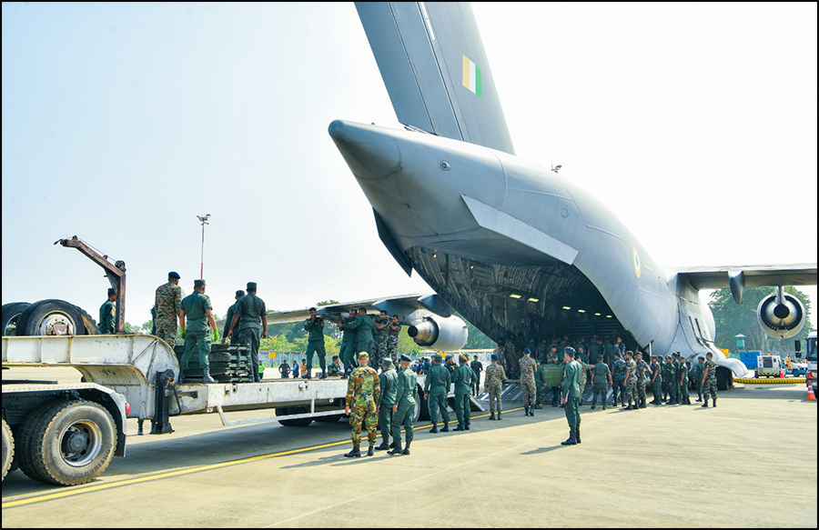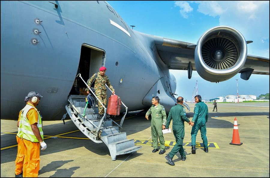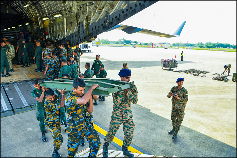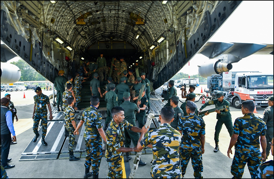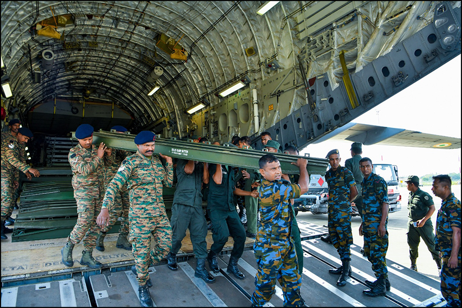 A special Indian Air Force C-17 Globemaster aircraft carrying Bailey bridge components and specialist personnel landed in Sri Lanka this afternoon (04) to support ongoing disaster recovery efforts across the country.