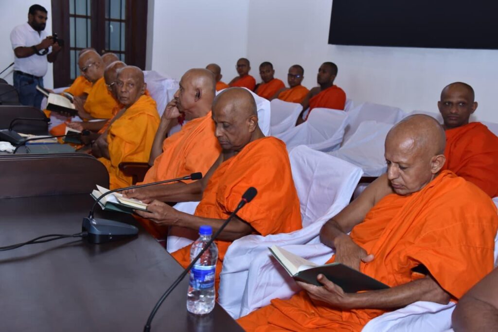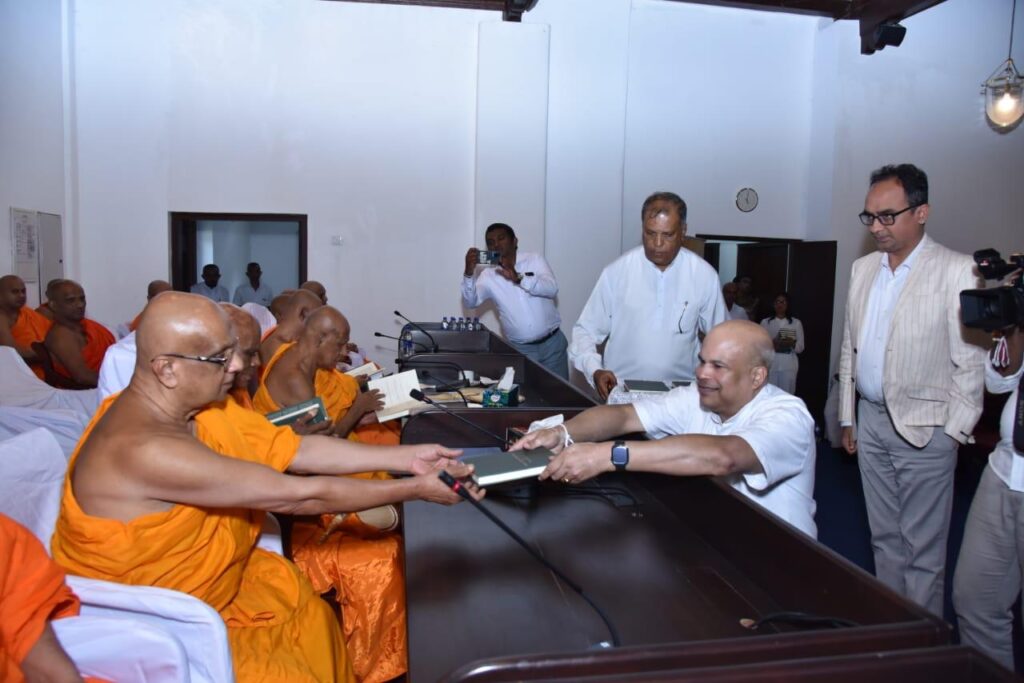 The book was presented to Most Ven. Dimbulkumbure Sri Saranankara Wimaladhammabhidana Thero – Anunayake Thero of Malwatte chapter, Most Ven. Dr. Niyangoda Wijithasiri Thero – Anunayake Thero of Malwatte Chapter, Most Ven. Wedaruwe Dharmakeerthi Sri Rathanapala Upali Thero – Anunayake of Asgiriya chapter and Venerable Theros of Malwatte and Asgiriya chapter.